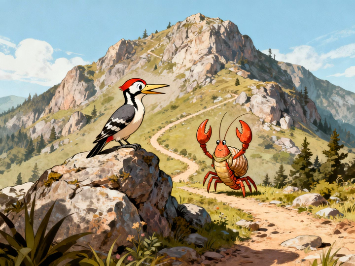 E così passò il tempo ed il picchio gli insegnò ad andare in montagna dando al crostaceo tutto ciò che di più prezioso aveva: il proprio cuore.